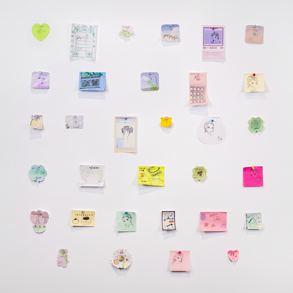 Records of Presence 8月 - 9月 2024年 / 2024 / Colored pencil and marker on note pads, and push pins / Dimensions variable