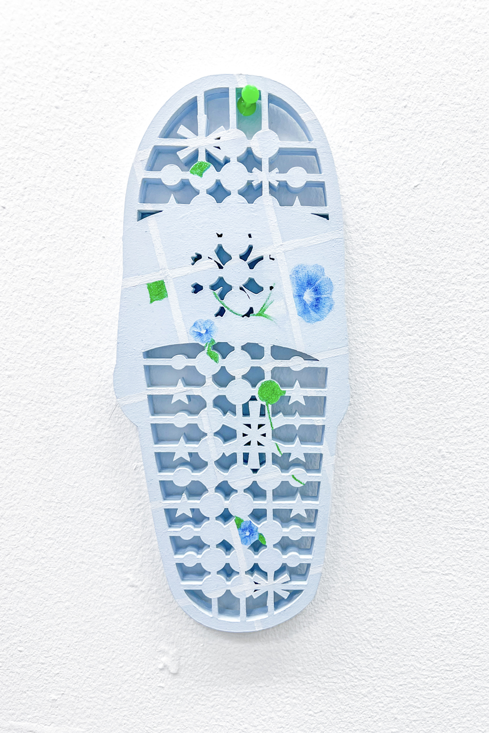Click clack slippers / 2023 / Acrylic on wood panel / 3 x 14 x 0.5 in.